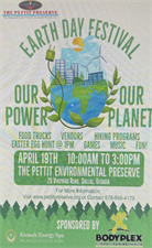 The event concludes at 3 PM. We would love to have you join us in our Celebration of our BEAUTIFUL Planet! Please come and join us in this family fun Event!! If you haven't been to the Preserve, visit our Website www.pettitpreserve.org to see the Preserve, keep informed of all the activities that we have going on as well as becoming a Member and making donations. We look forward to seeing you on the 19th!