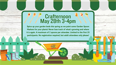 Want to spice up your garden beds this spring? Join us at the Cartersville Library as we paint some Garden Spoon Markers for your plants! Never lose track of what’s growing and where it is again. A maximum of 2 spoons per attendee. Limited to the first 20 participants. No registration required, but adult attendees only please!