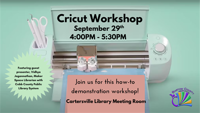 Calling all home crafters! Makerspace Librarian, Vidhya Jagannathan of Cobb County Public Library will lead a how-to workshop on using the Cricut computer controlled cutting machine for home crafters. She will demonstrate how to use the Cricut to make customized tote bags with heat transfer vinyl and customized tumblers with permanent vinyl. She will also share favorite resources, insider hacks, and free templates.