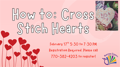 Join our cross stitching session and learn how to cross stitch hearts for the season of love!