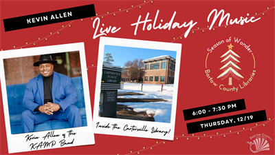 Join us for an evening of live music by Kevin Allen of the KAMP Band. Enjoy holiday music inside the Cartersville Library, as Kevin plays the keyboard and sings some of our favorite holiday tunes on the balcony above the main desk.