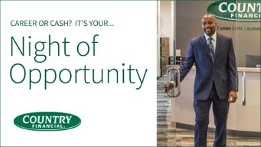 Career or cash? It’s your Night of Opportunity presented by COUNTRY Financial. The one-night-only event lets you explore the rewarding career of being a local COUNTRY Financial Insurance Agent.