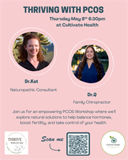 Join us for an empowering PCOS workshop where we'll explore natural solutions to help balance hormones, boost fertility, and take control of your health- alongside our amazing guest speaker, Dr. Kat, Naturopathic Consultant!